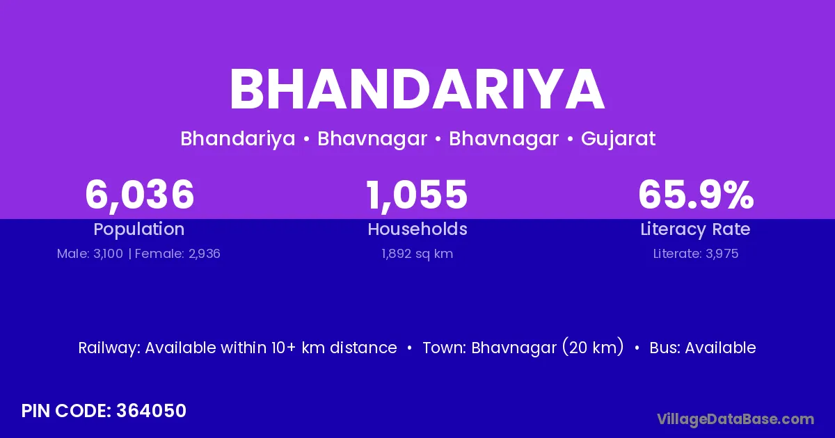 Bhandariya village has a total population of 1,351 people, of which 689 are males and 662 are females.