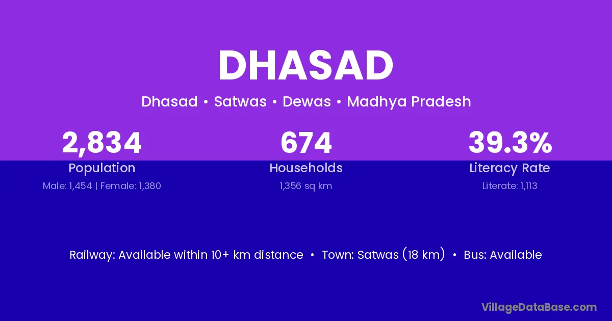 Satwas (18 km) is the nearest town to Dhasad village for major economic activities and is located approximately 18 km away.