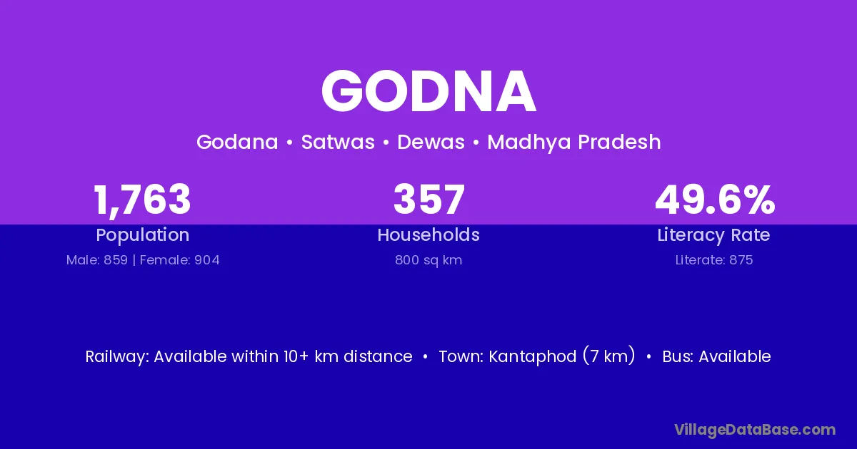 Kantaphod (7 km) is the nearest town to Godna village for major economic activities and is located approximately 7 km away.