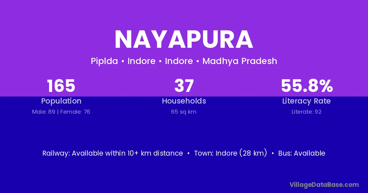 Kantaphod (11 km) is the nearest town to Nayapura village for major economic activities and is located approximately 11 km away.