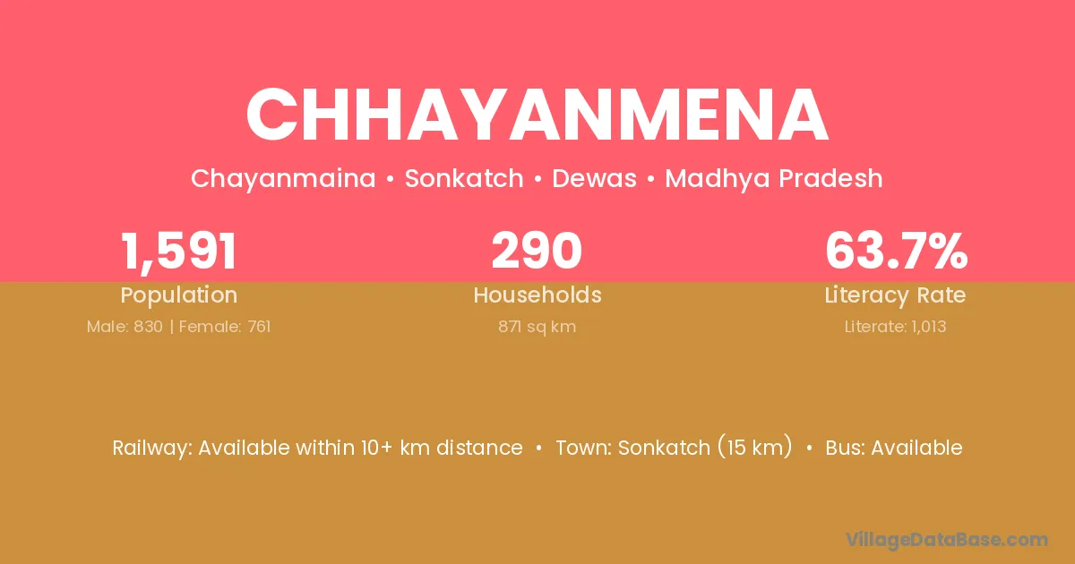 Sonkatch (15 km) is the nearest town to Chhayanmena village for major economic activities and is located approximately 15 km away.