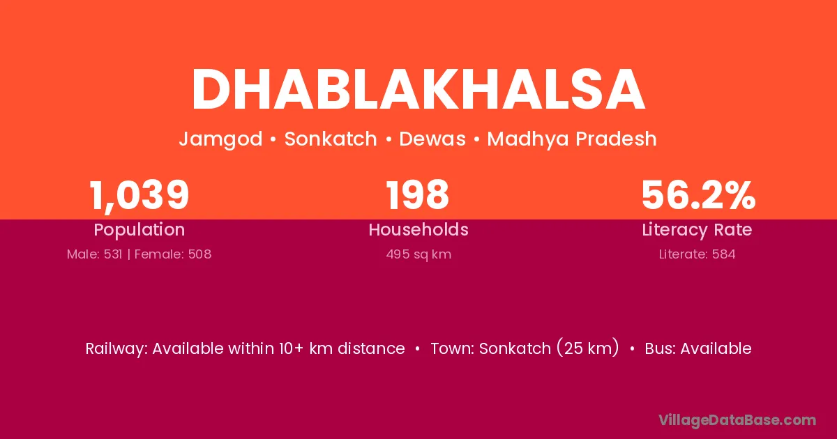Dhablakhalsa village has a total population of 1,039 people, of which 531 are males and 508 are females.