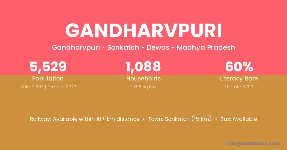 Sonkatch (15 km) is the nearest town to Gandharvpuri village for major economic activities and is located approximately 15 km away.