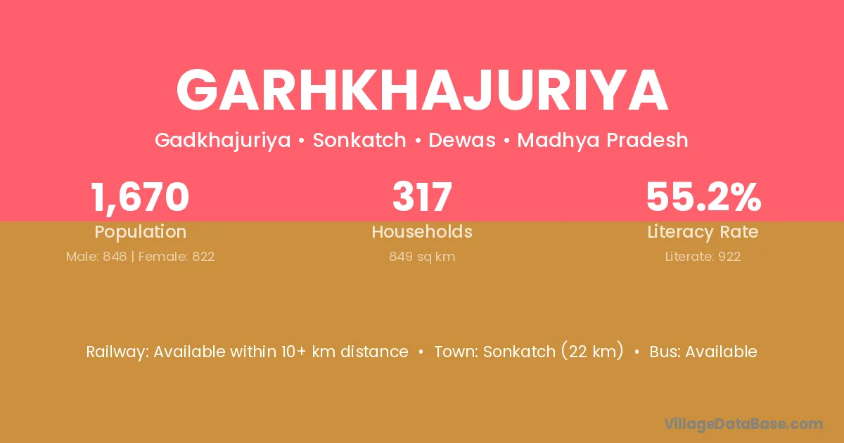 Sonkatch (22 km) is the nearest town to Garhkhajuriya village for major economic activities and is located approximately 22 km away.