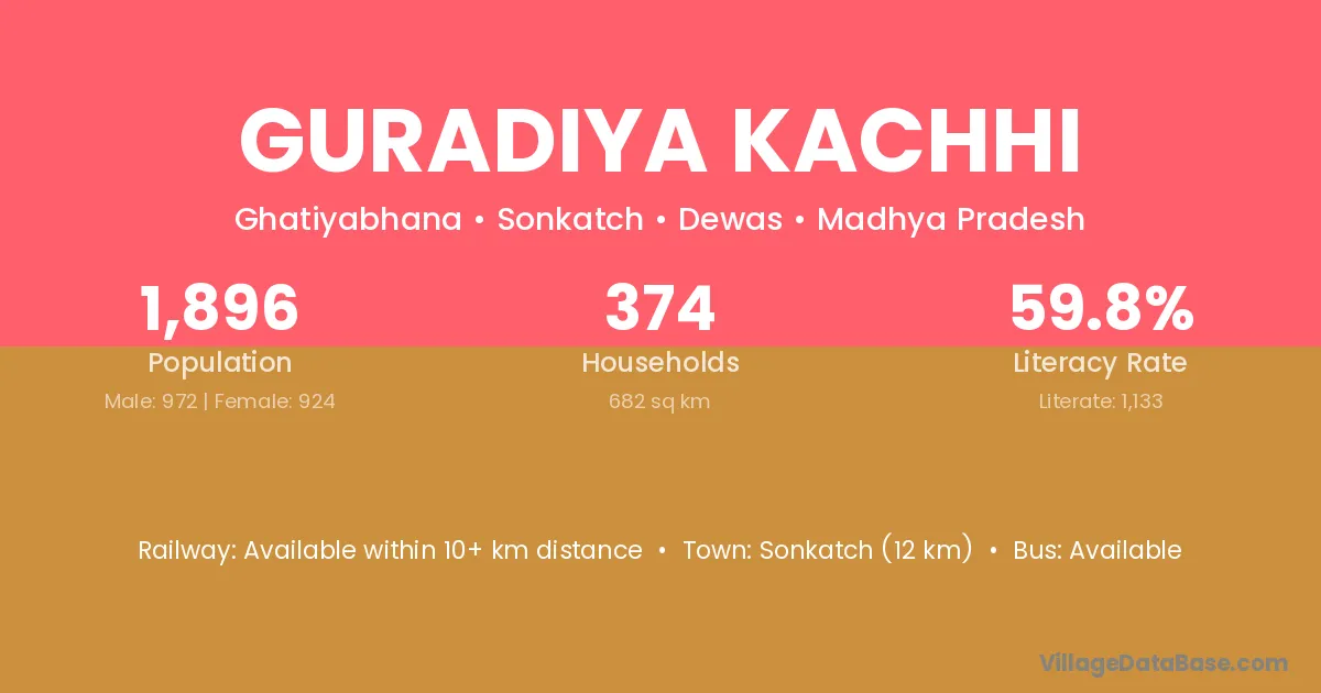 Guradiya Kachhi village has a total population of 1,896 people, of which 972 are males and 924 are females.