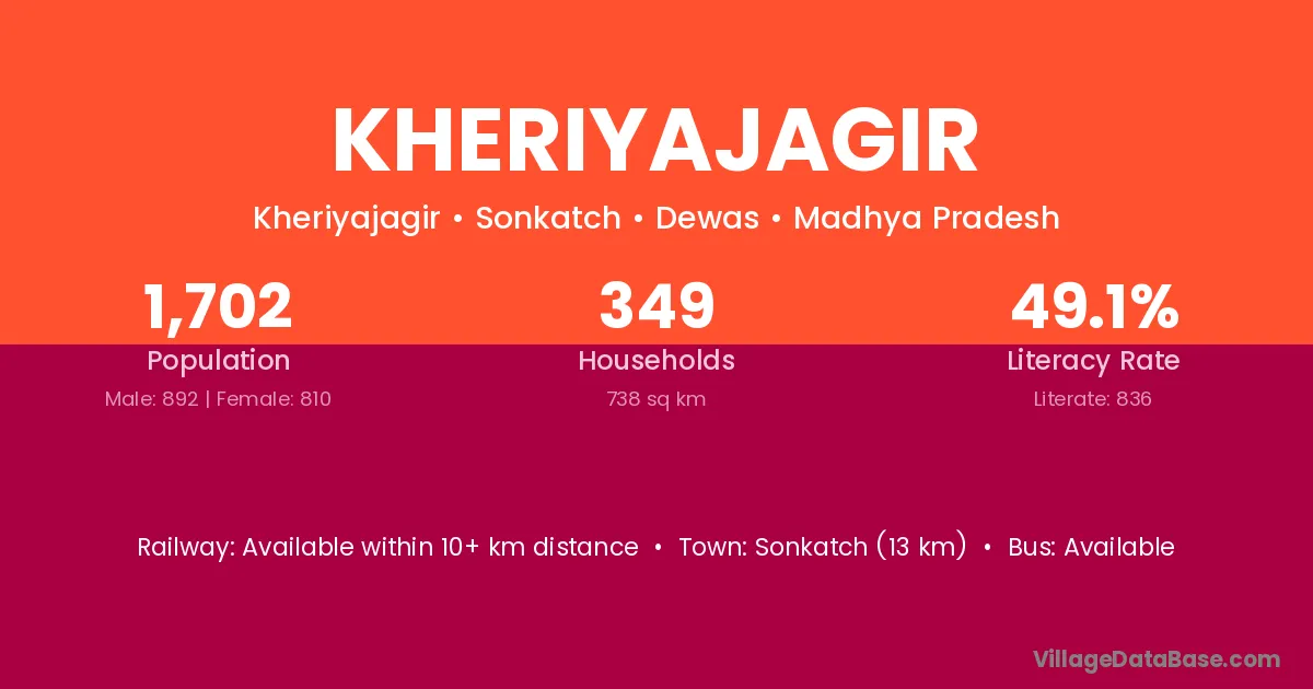 Sonkatch (13 km) is the nearest town to Kheriyajagir village for major economic activities and is located approximately 13 km away.