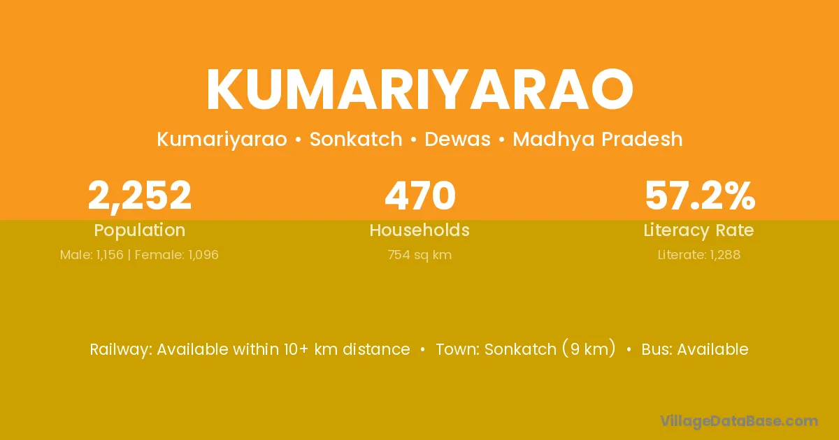 Sonkatch (9 km) is the nearest town to Kumariyarao village for major economic activities and is located approximately 9 km away.