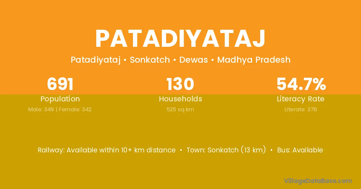 Sonkatch (13 km) is the nearest town to Patadiyataj village for major economic activities and is located approximately 13 km away.