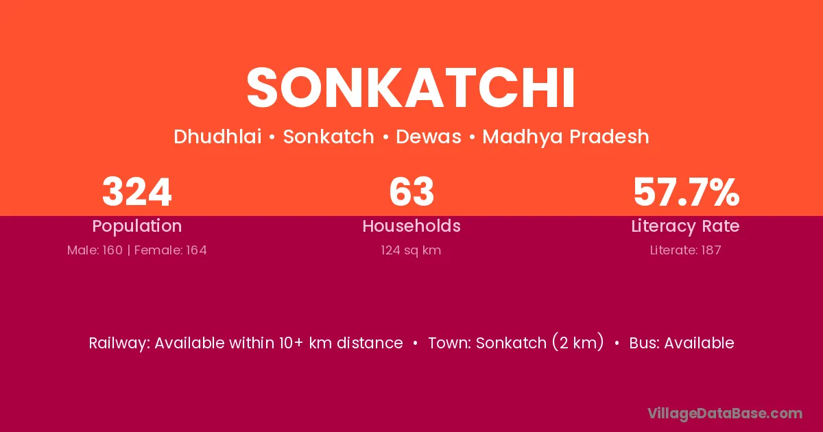 Sonkatch (2 km) is the nearest town to Sonkatchi village for major economic activities and is located approximately 2 km away.