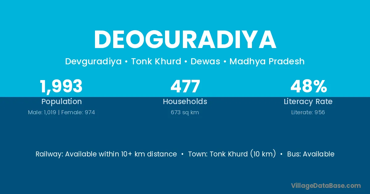 Tonk Khurd (10 km) is the nearest town to Deoguradiya village for major economic activities and is located approximately 10 km away.