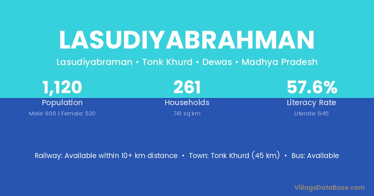 Tonk Khurd (45 km) is the nearest town to Lasudiyabrahman village for major economic activities and is located approximately 45 km away.