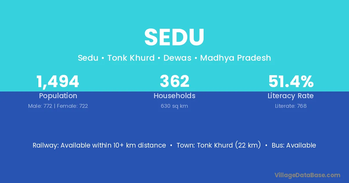 Tonk Khurd (22 km) is the nearest town to Sedu village for major economic activities and is located approximately 22 km away.