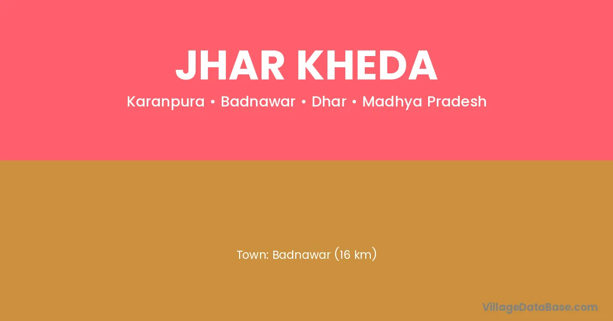 Badnawar (16 km) is the nearest town to Jhar Kheda village for major economic activities and is located approximately 16 km away.