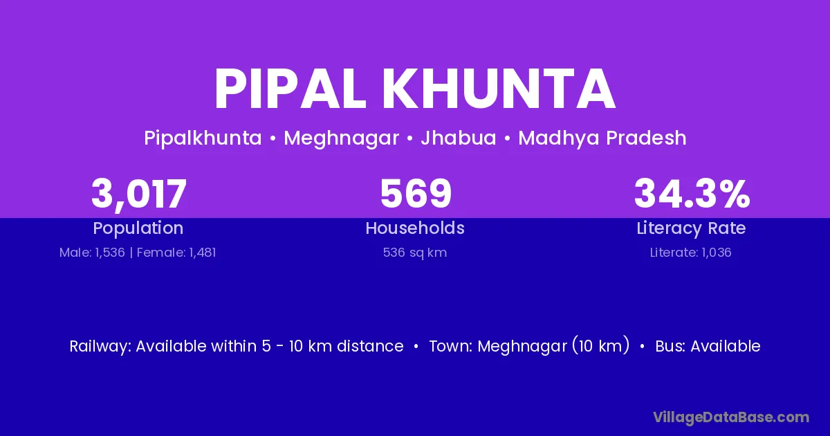Badnawar (16 km) is the nearest town to Pipal Khunta village for major economic activities and is located approximately 16 km away.