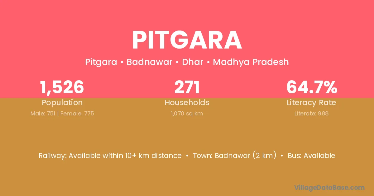 Badnawar (2 km) is the nearest town to Pitgara village for major economic activities and is located approximately 2 km away.