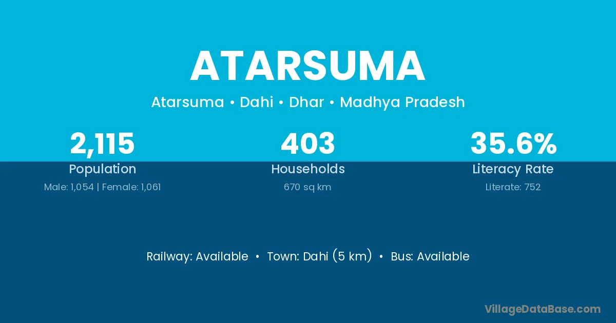 Dahi (5 km) is the nearest town to Atarsuma village for major economic activities and is located approximately 5 km away.