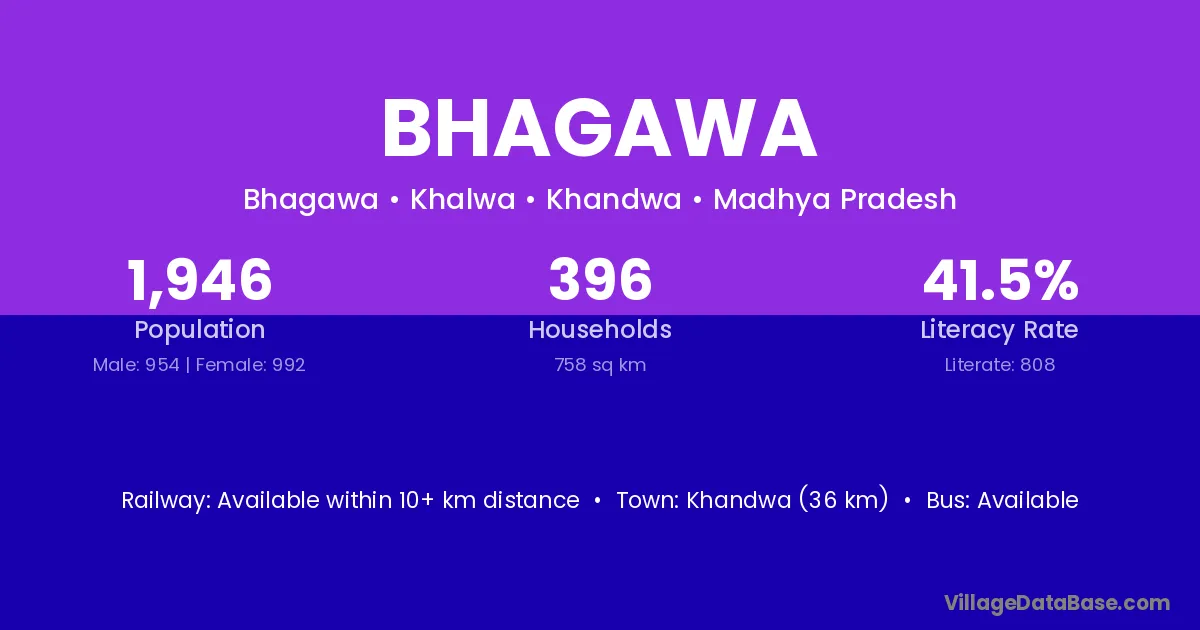 Bhagawa village has a total population of 1,689 people, of which 846 are males and 843 are females.