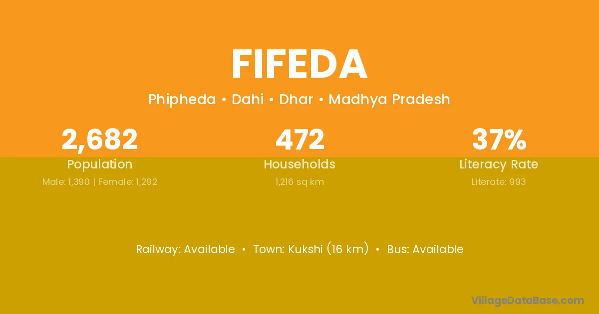 Kukshi (16 km) is the nearest town to Fifeda village for major economic activities and is located approximately 16 km away.