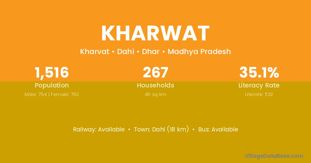 Dahi (18 km) is the nearest town to Kharwat village for major economic activities and is located approximately 18 km away.