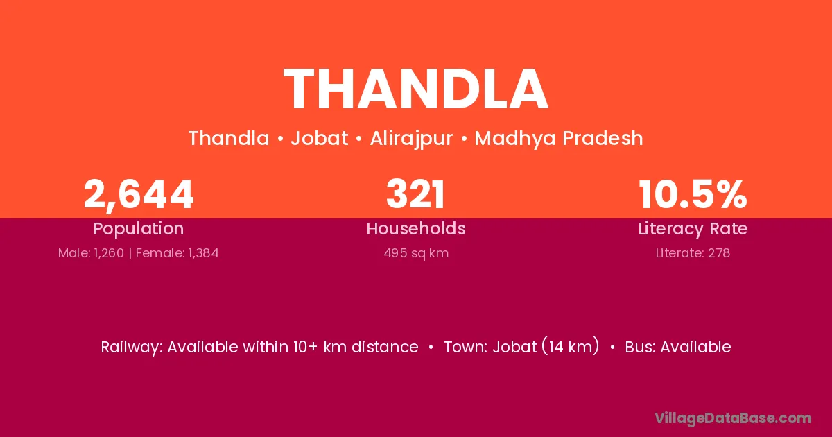 Dahi (9 km) is the nearest town to Thandla village for major economic activities and is located approximately 9 km away.
