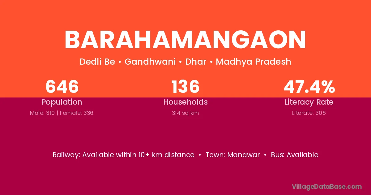 Manawar is the nearest town to Barahamangaon village for major economic activities