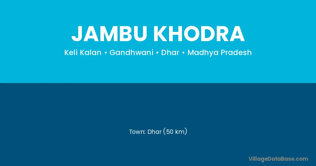Dhar (50 km) is the nearest town to Jambu Khodra village for major economic activities and is located approximately 50 km away.