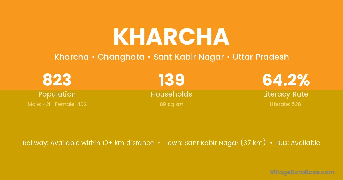The literacy rate of Kharcha village is 32.39%. Male literacy stands at 39.08% and female literacy at 25.84%.