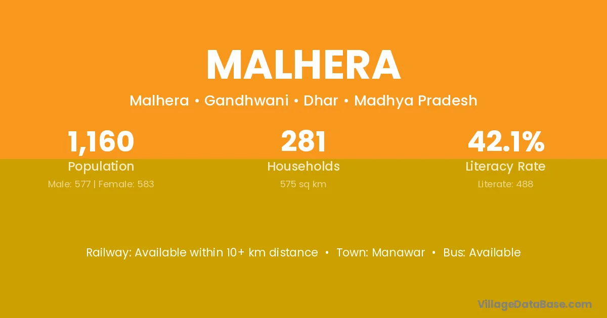 Malhera village is located in the Gandhwani Tehsil of the Dhar district in Madhya Pradesh .