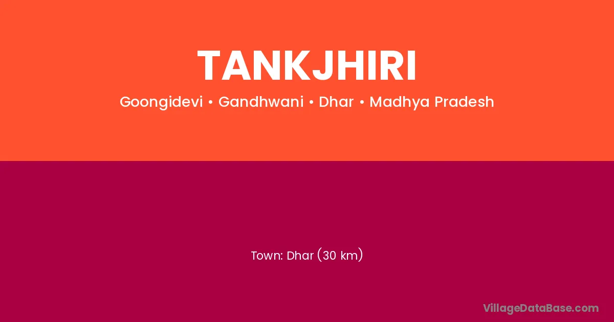Dhar (30 km) is the nearest town to Tankjhiri village for major economic activities and is located approximately 30 km away.