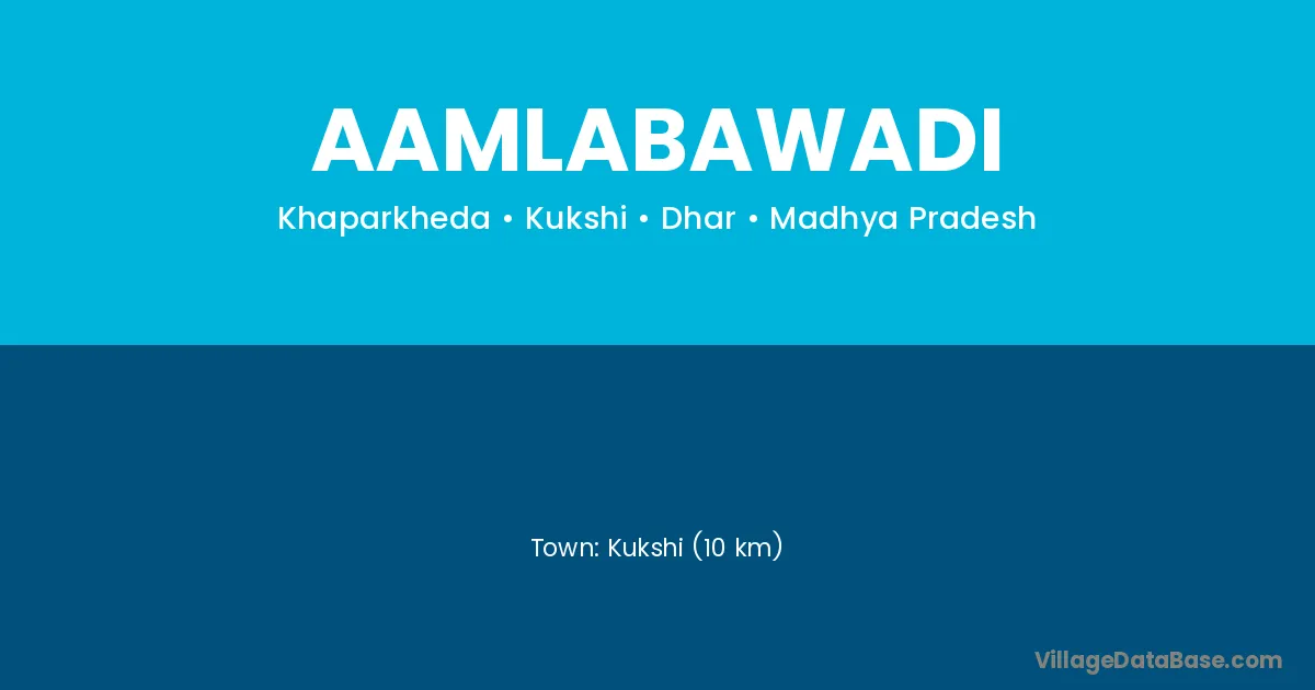 Kukshi (10 km) is the nearest town to Aamlabawadi village for major economic activities and is located approximately 10 km away.