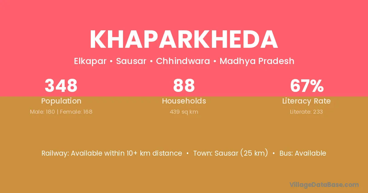 Kukshi (19 km) is the nearest town to Khaparkheda village for major economic activities and is located approximately 19 km away.