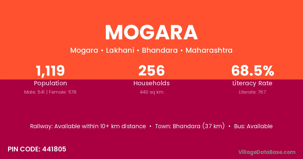 Mogara village has a total population of 1,701 people, of which 856 are males and 845 are females.