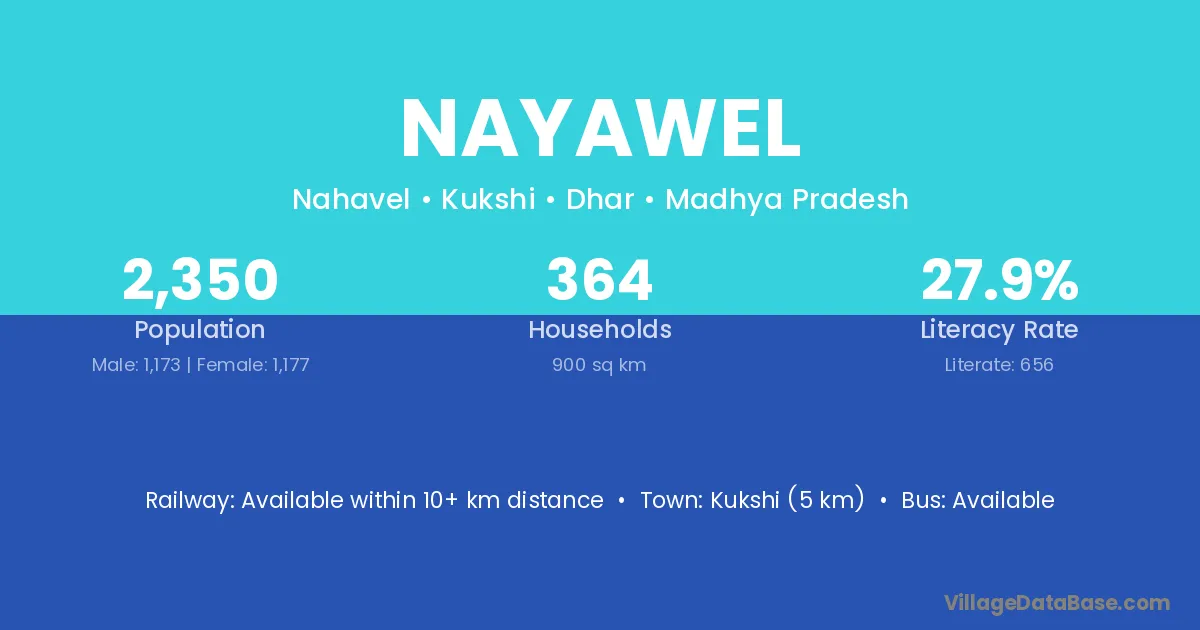 Kukshi (5 km) is the nearest town to Nayawel village for major economic activities and is located approximately 5 km away.