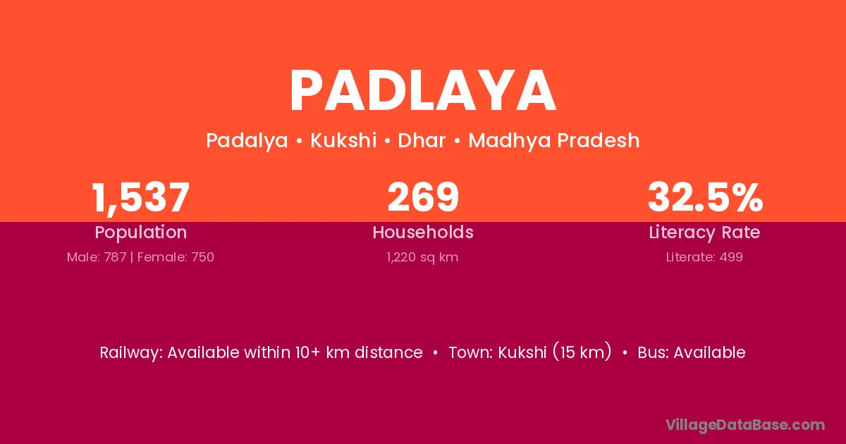 Kukshi (15 km) is the nearest town to Padlaya village for major economic activities and is located approximately 15 km away.