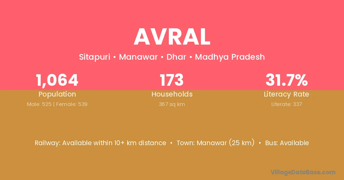 Manawar (25 km) is the nearest town to Avral village for major economic activities and is located approximately 25 km away.