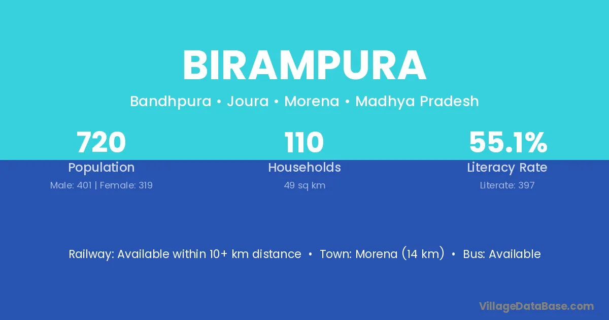 Manawar (27 km) is the nearest town to Birampura village for major economic activities and is located approximately 27 km away.