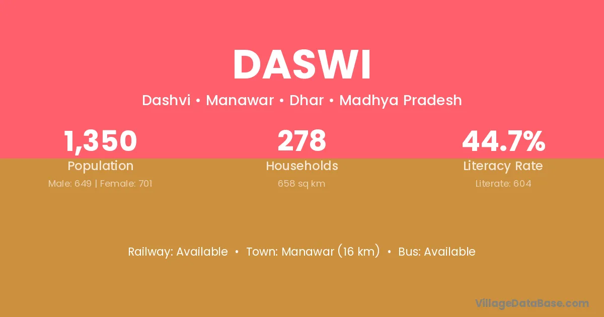 Daswi village is located in the Manawar Tehsil of the Dhar district in Madhya Pradesh .
