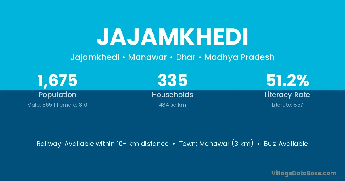 Manawar (3 km) is the nearest town to Jajamkhedi village for major economic activities and is located approximately 3 km away.