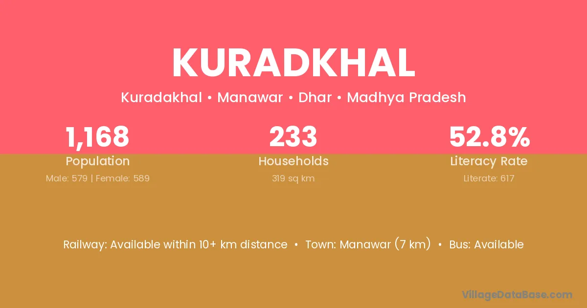 Manawar (7 km) is the nearest town to Kuradkhal village for major economic activities and is located approximately 7 km away.