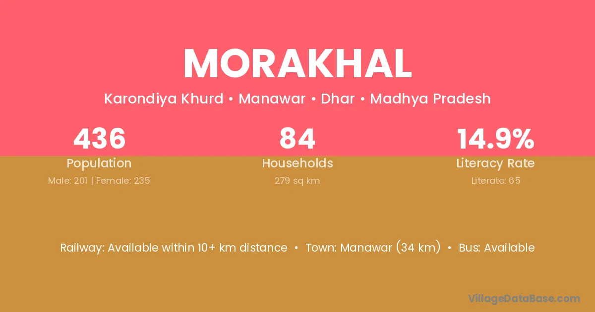 Manawar (34 km) is the nearest town to Morakhal village for major economic activities and is located approximately 34 km away.