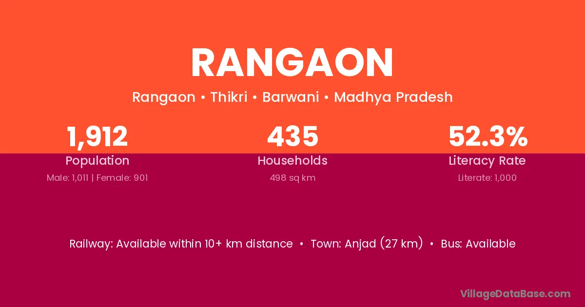 Manawar (12 km) is the nearest town to Rangaon village for major economic activities and is located approximately 12 km away.