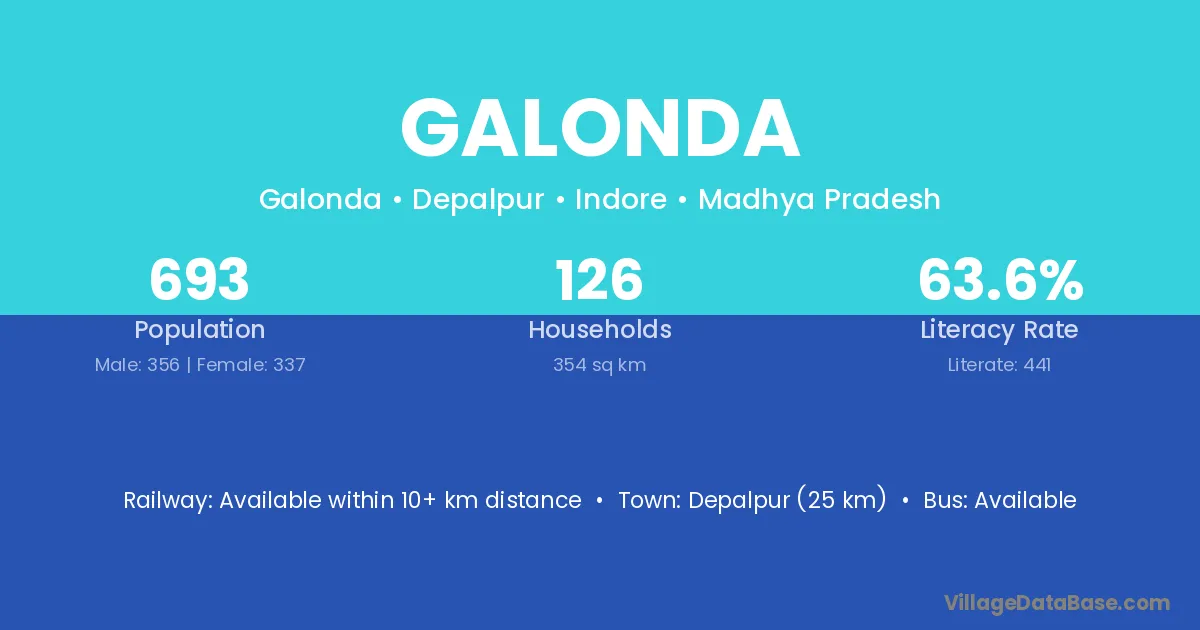 Sardarpur (24 km) is the nearest town to Galonda village for major economic activities and is located approximately 24 km away.