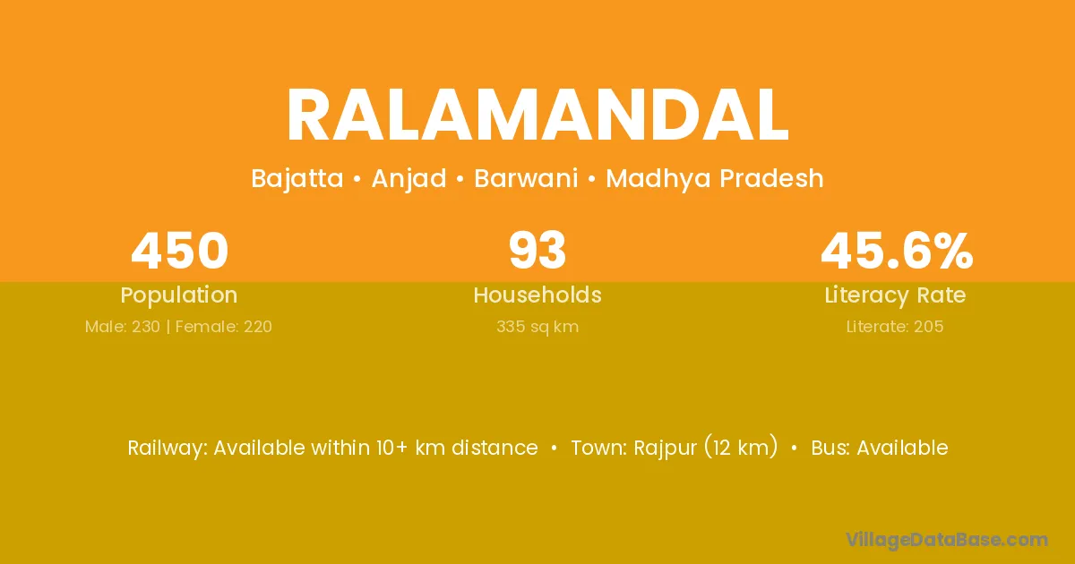 Sardarpur (20 km) is the nearest town to Ralamandal village for major economic activities and is located approximately 20 km away.