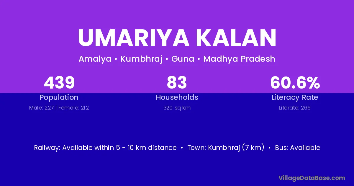 Umariya Kalan village has a total population of 440 people, of which 214 are males and 226 are females.