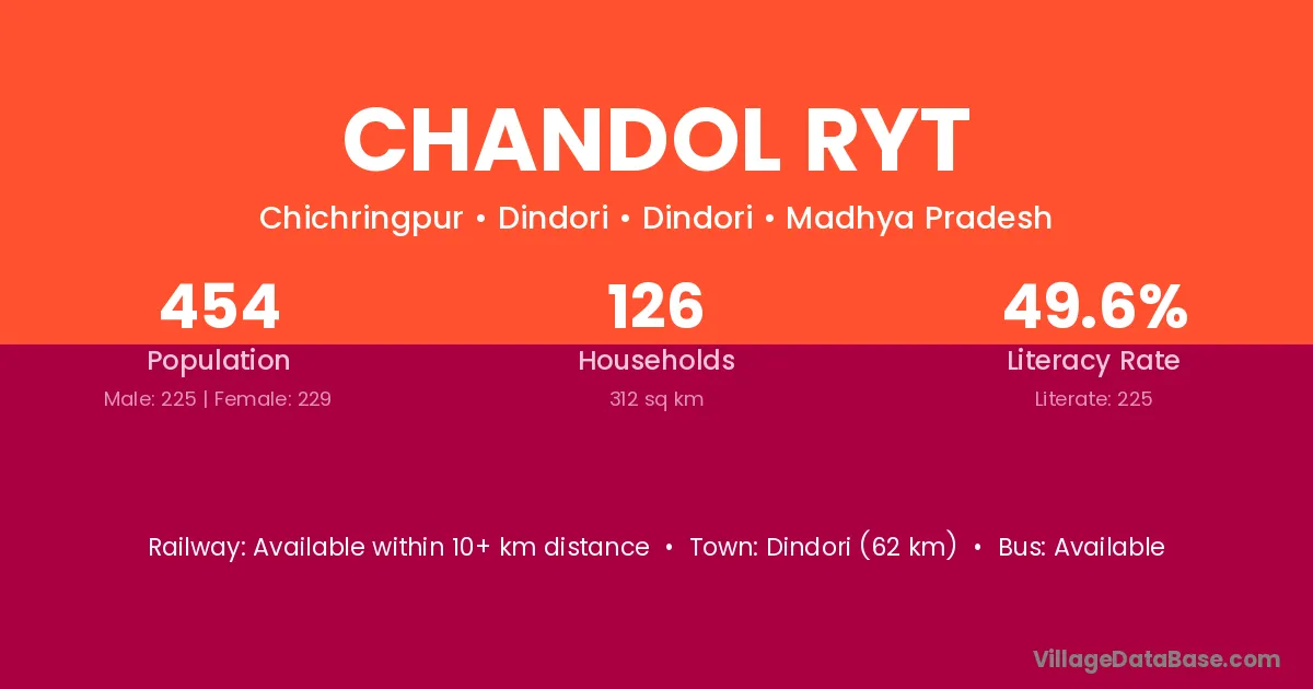 Chandol Ryt village has a total population of 454 people, of which 225 are males and 229 are females.