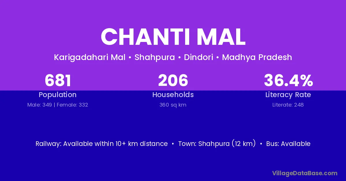 Chanti Mal village has a total population of 681 people, of which 349 are males and 332 are females.
