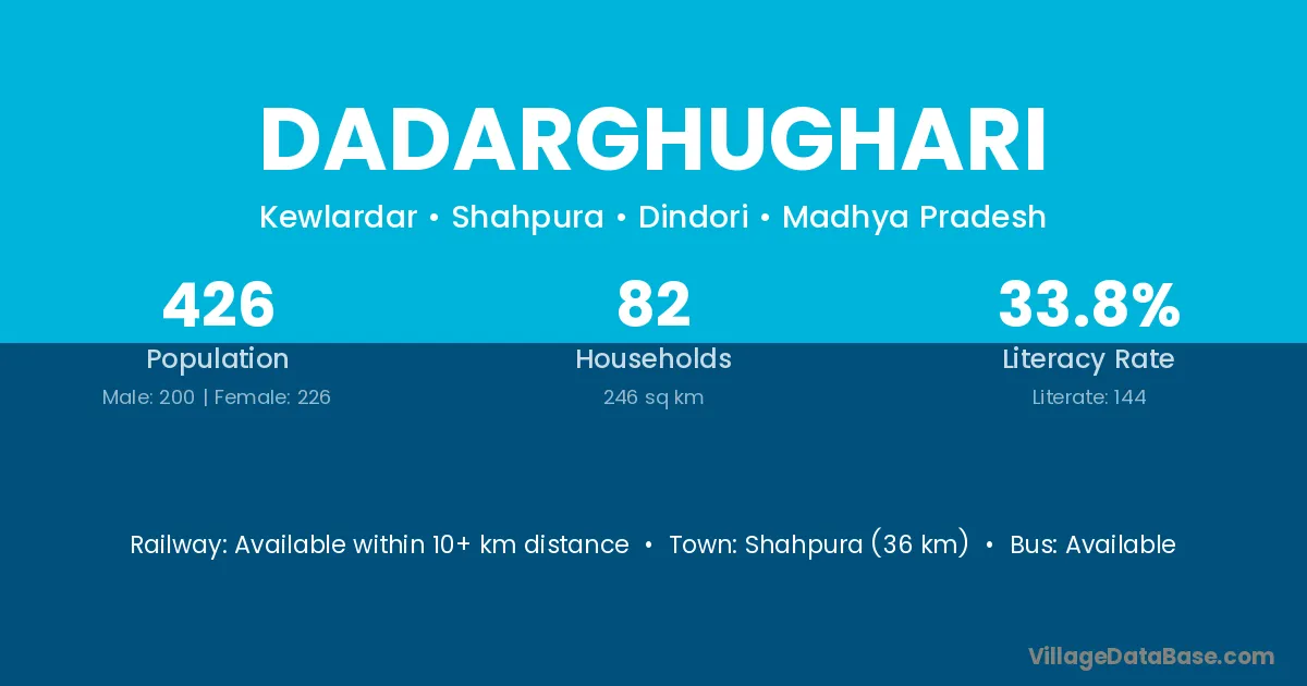 Dadarghughari village has a total population of 426 people, of which 200 are males and 226 are females.