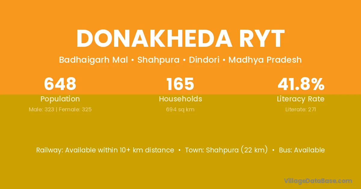 Donakheda Ryt village has a total population of 648 people, of which 323 are males and 325 are females.