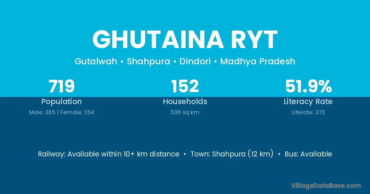 Ghutaina Ryt village has a total population of 719 people, of which 365 are males and 354 are females.