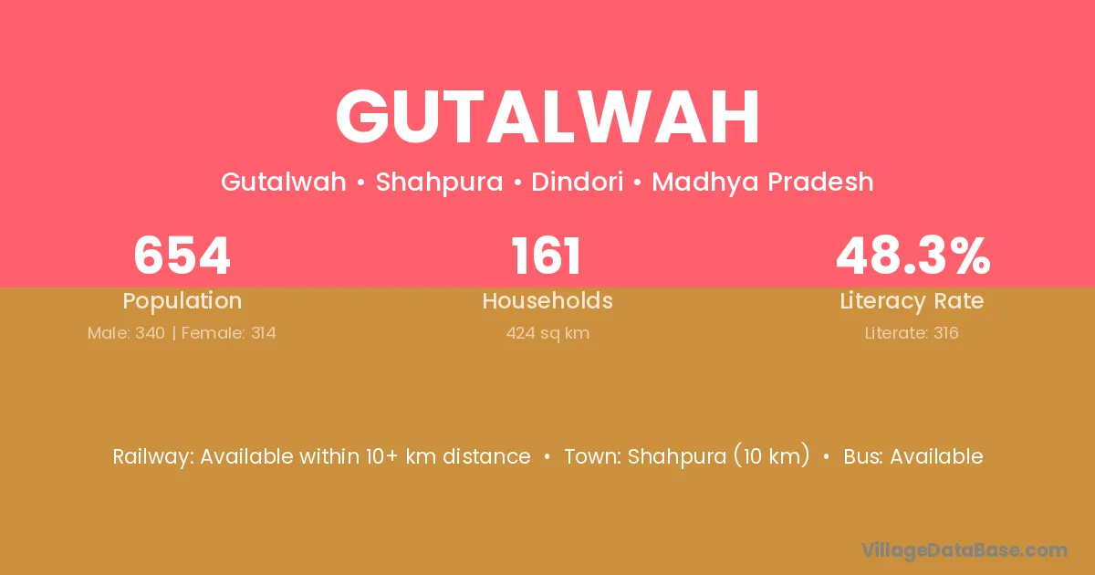 Gutalwah village has a total population of 654 people, of which 340 are males and 314 are females.